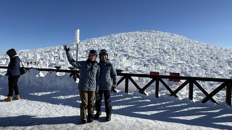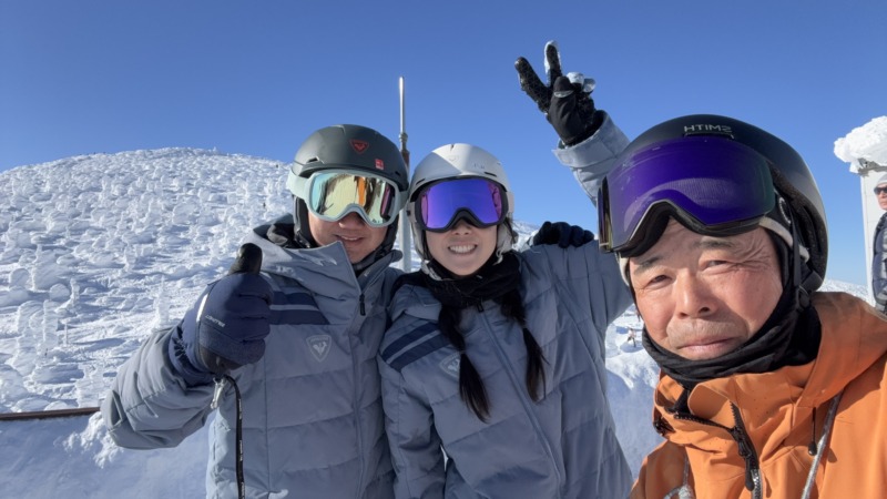 続いてはこちらのお客様。天気が良かったため、午後からはスノーモンスターを見に山頂までチャレンジ。帰りはヘトヘトになりながら、でも笑顔で最後までがんばりました。