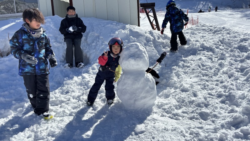 初めはこちらのクラス。人気のキッズレッスン。兄弟で参加していただきました。初めてのスノーボードでしたが、リフトにも乗りスノーボード楽しんでいただけました。大きな雪だるまも作ってみました。