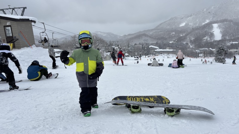 続いては、こちらのお客様。先程はご紹介した男の子のお兄ちゃん。お兄ちゃんはサーフィンもやっており、バランス感覚がバッチリ‼︎2時間のレッスンでしたが、サイドスリップができ、2本リフトを乗りました。