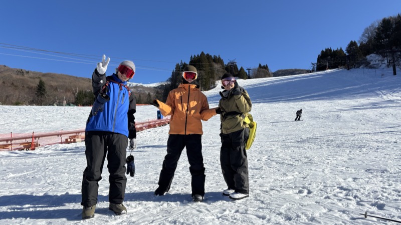 今年で当スクールのレッスンを3シーズン連続で来てきただきました。夫婦で来校され、スノーボードのレベルが違うので、それぞれのレベルに合ったレッスンということで、2クラスに分かれて行いました。フォームを確認しながらのレッスンでした。