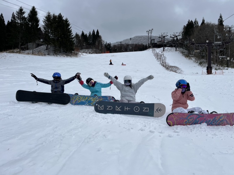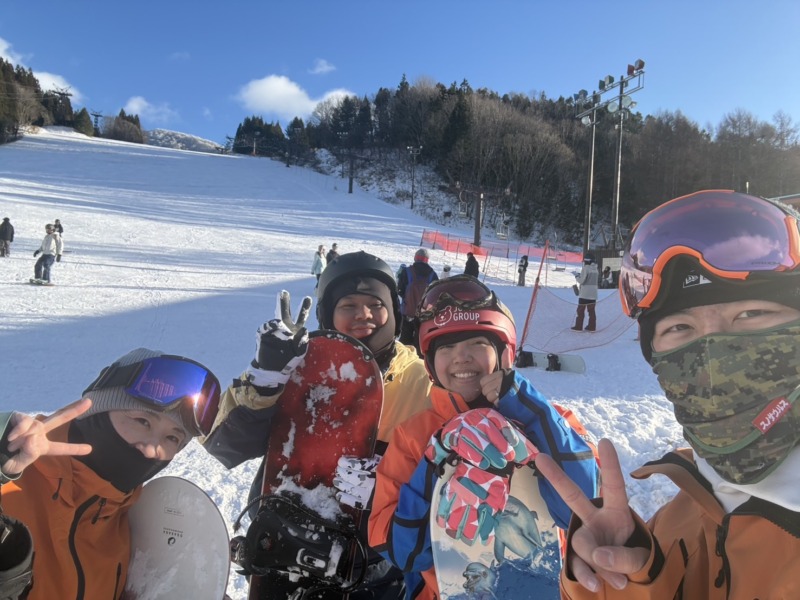 今日は曇りのち晴れ、ゲレンデはハードバーンでした。でも、どのクラスもスノーボード楽しんでましたよ。