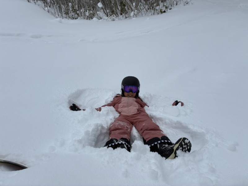 最後にこちらのお客様。海外からのお客様で7歳。雪遊びも少ししながら、楽しくレッスン。転んでも起き上がって積極的にチャレンジ。いっぱい頑張りました。