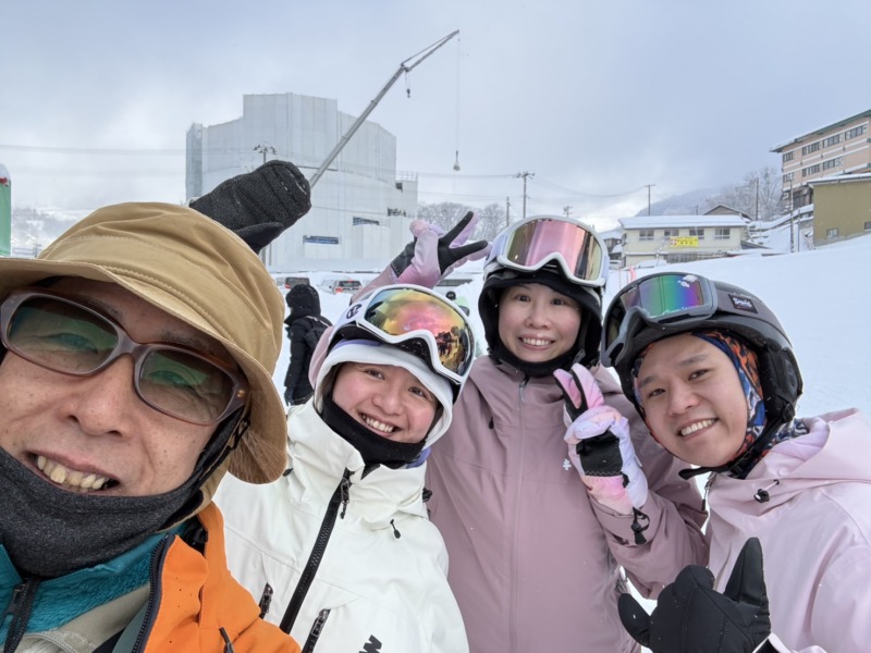 続いてはこちらのお客様。海外からのお客様です。今日は2回目のスノーボード。サイドスリップからS字ターンの導入をレッスンしました。ガッツがあり転んでも、転んでも、頑張って練習しました。