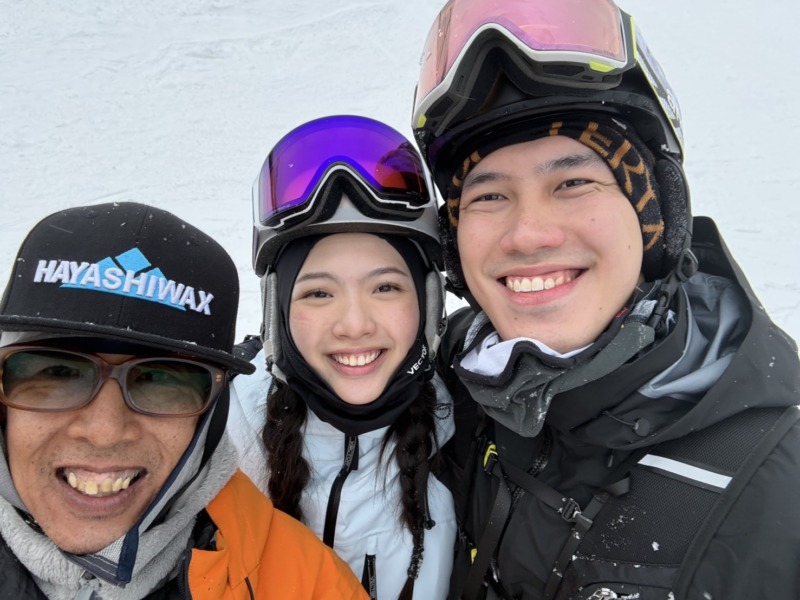 続いてはこちらのお客様。こちらもリピートのお客様。3日前にレッスンを受けていただきましたが、今日もレッスンに入っていただきました。今回が初めたばかりですが、どんどん上手くなり、今日は横倉方面のゲレンデミニガイド。長い距離を滑って、楽しんでいただきました。