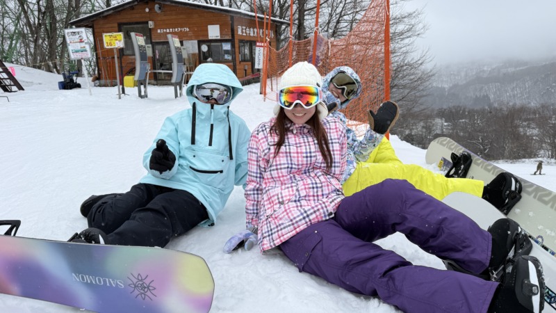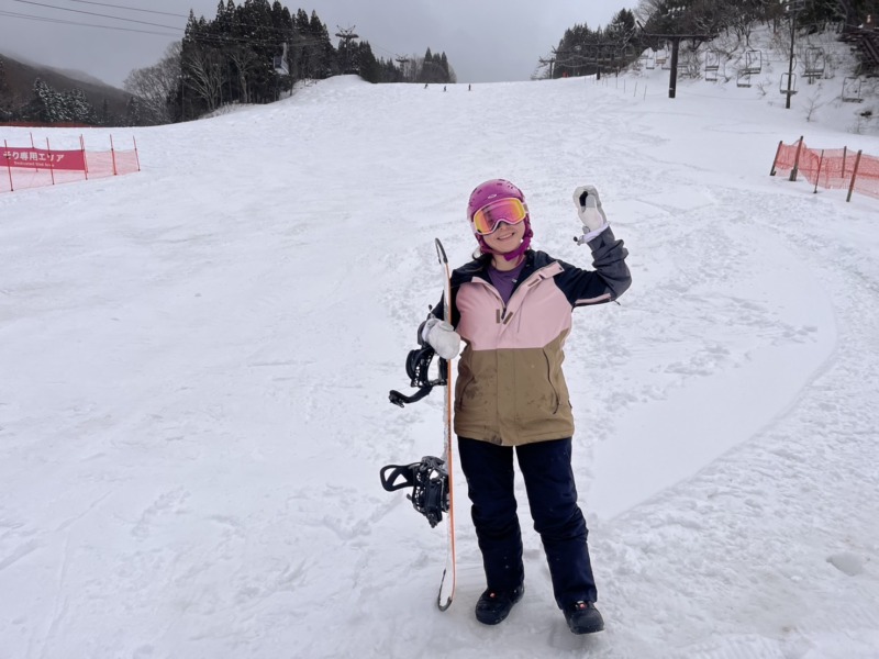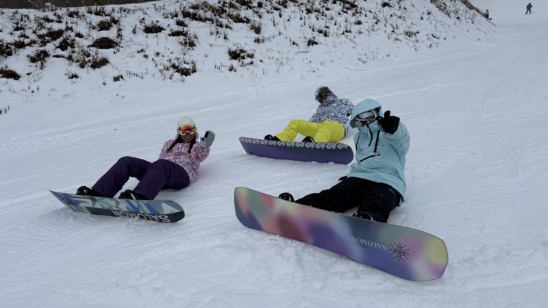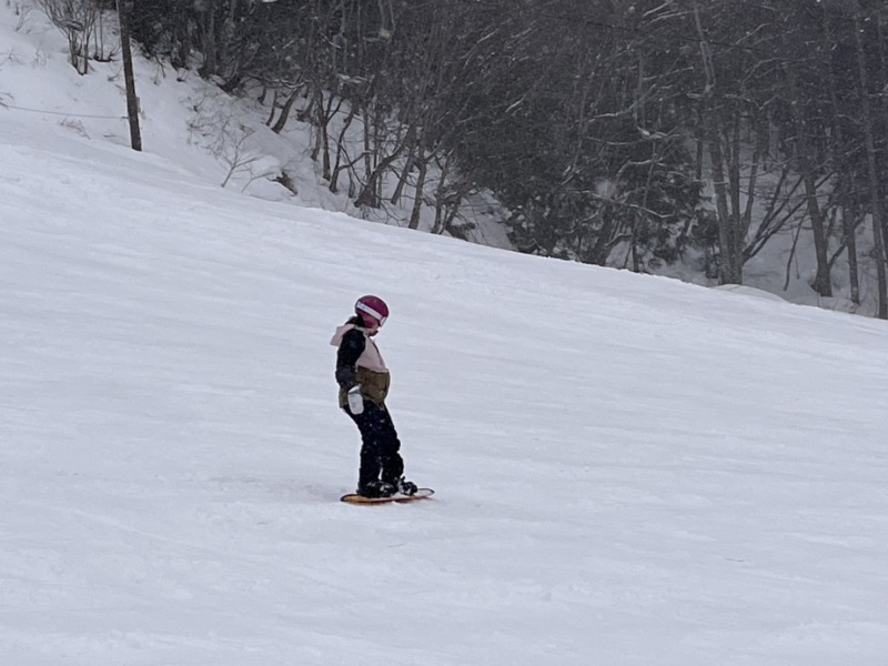 続いてはこちらのお客様。スキーは経験ありでしたが、スノーボードは初めて。でも、雪になれてるせいか、順調にレッスンが進み、S字ターンができるようになりました。