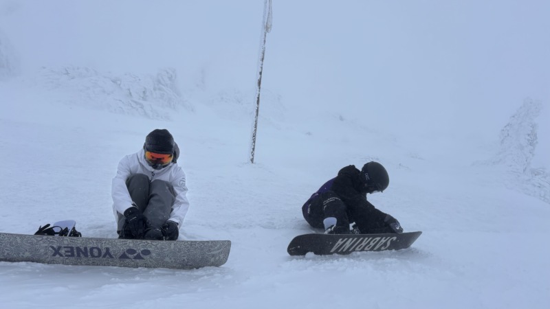 続いてはこちらのお客様。スノーボード経験あり。寒い一日でしたが、せっかく蔵王に来たので、山頂にチャレンジ。大満足の一日でした。