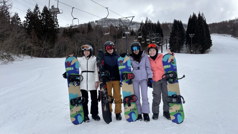 初めはこちらのお客様。海外からのお客様。仲良し四人組。雪に縁のない南国からお越し頂きました。初めてのスノーボードですが、笑いが絶えないレッスンになりました。すごく楽しかったです。
