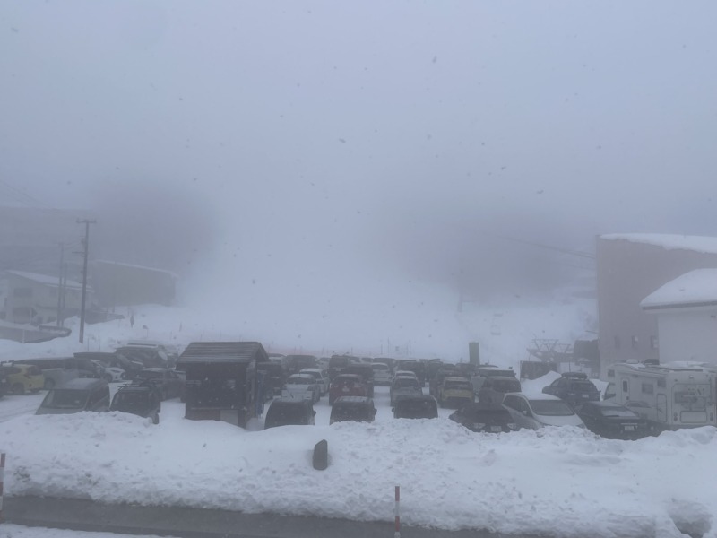 気温は高めですが、湿った雪が降っていてウェアやグローブが濡れやすく、体温を奪われやすい状況です。防寒対策や着替えの準備をしておくと安心です!