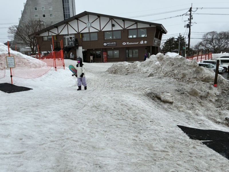 2月25日の蔵王|今朝は朝から雨の蔵王、雪解けも進み土が出て来ているゲレンデもあります。 2026.02.25 こんにちは、今朝は朝から大雨の蔵王です。 空はどんより、横倉ゲレンデの気温は2度です。今日は天気が悪いせいかお客様少なめの蔵王です。 ゲレンデはシャーベット状の雪になっています。雨で水分が多く、とても重たい雪になっています。↓ 駐車場付近は土が出ていて、雪も真っ黒に、、 3月下旬のような光景です。 また雪が降ってくれることを祈りましょう!