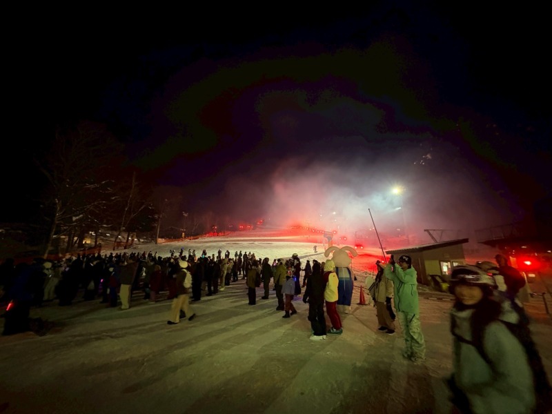 そのイベントに参加してきました。今年はスキーやスノーボードスクールのインストラクターのデモンストレーション滑走や、LED、松明を持っての滑走など、さまざまな出番がありました。