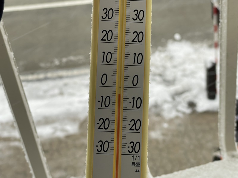 8:30時点の気温は−3度。天気は雪/吹雪となっていて、気温自体はそこまで低くありませんが、雪と風の影響で体感的にはかなり寒く感じられます。